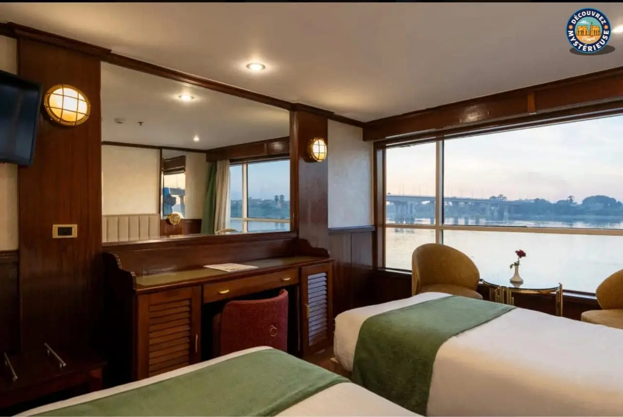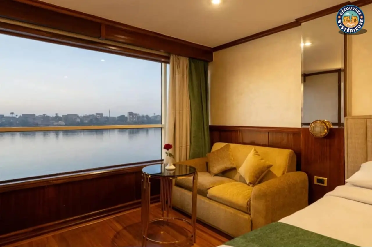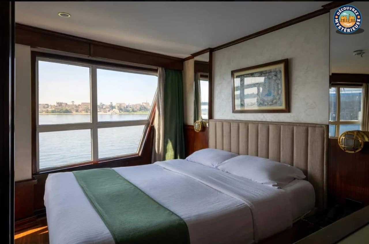 Embarquez pour un voyage de rêve au cœur de l’Égypte ancienne, à bord d’un bateau de croisière tout confort.