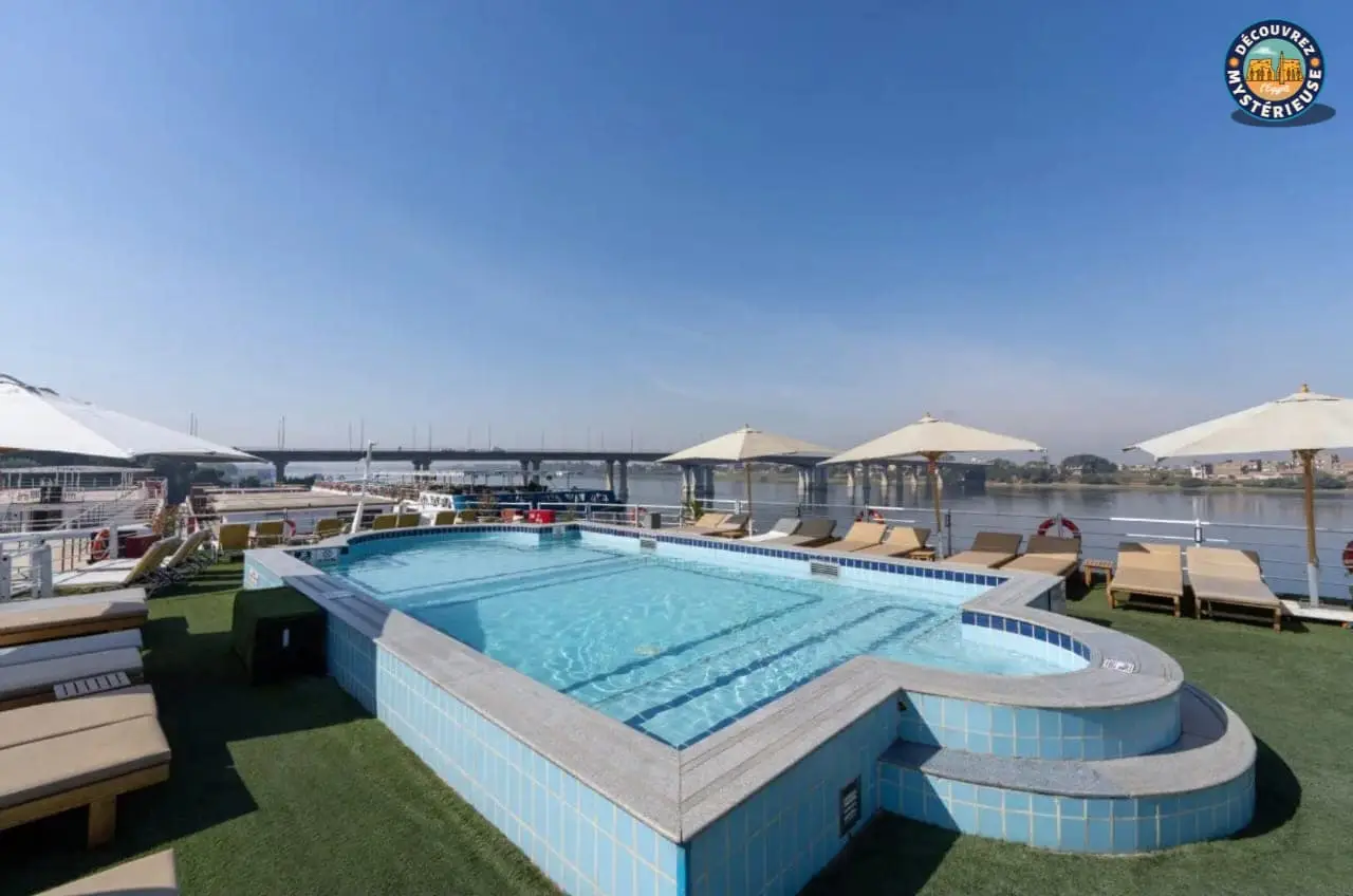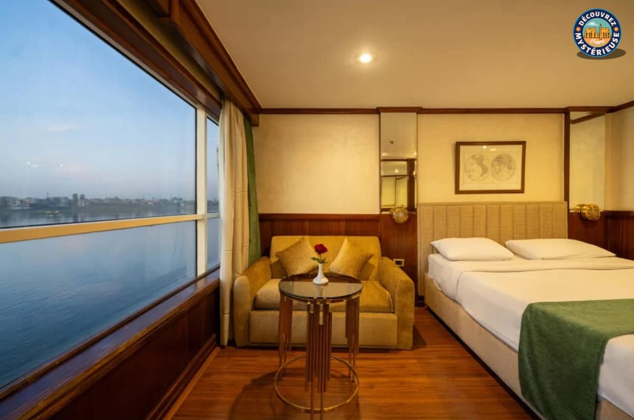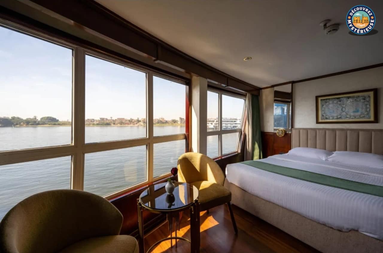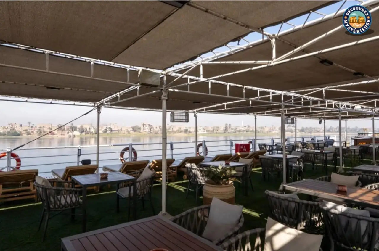Embarquez pour un voyage de rêve au cœur de l’Égypte ancienne, à bord d’un bateau de croisière tout confort.